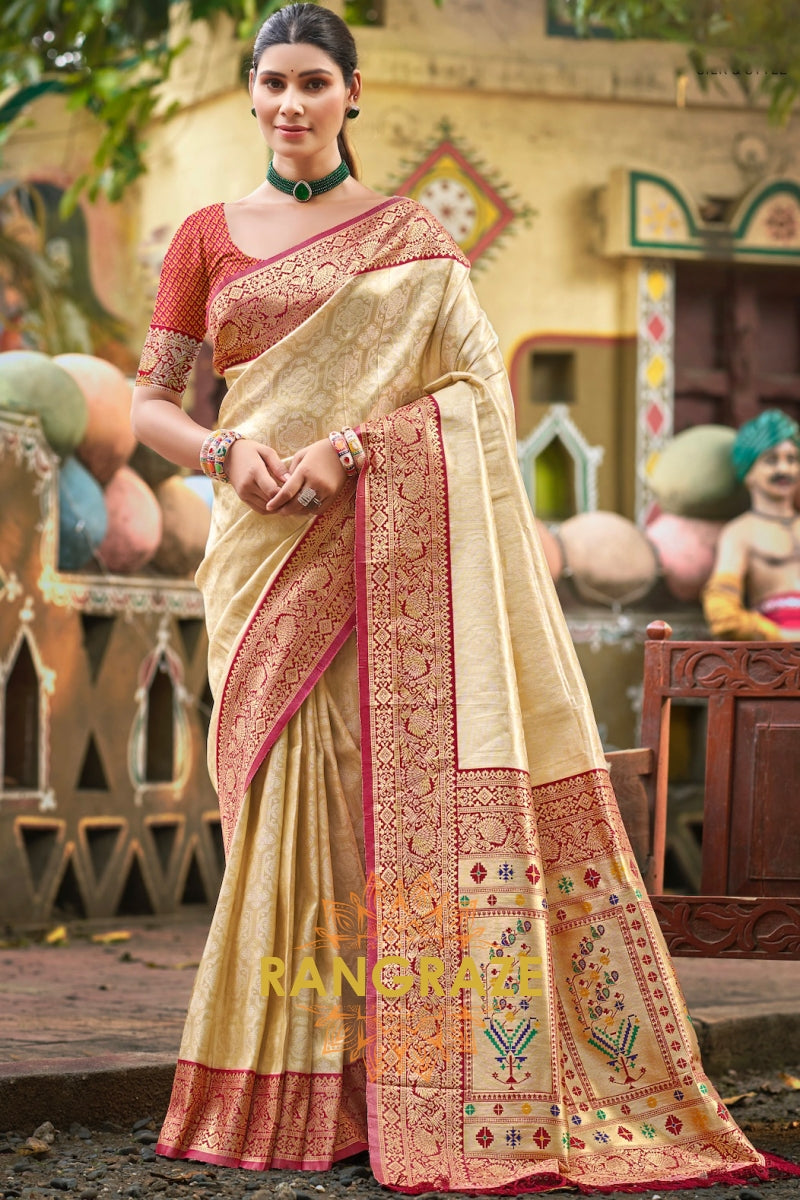 Golden Beige Woven Dual Tone Kanjivaram Silk Saree