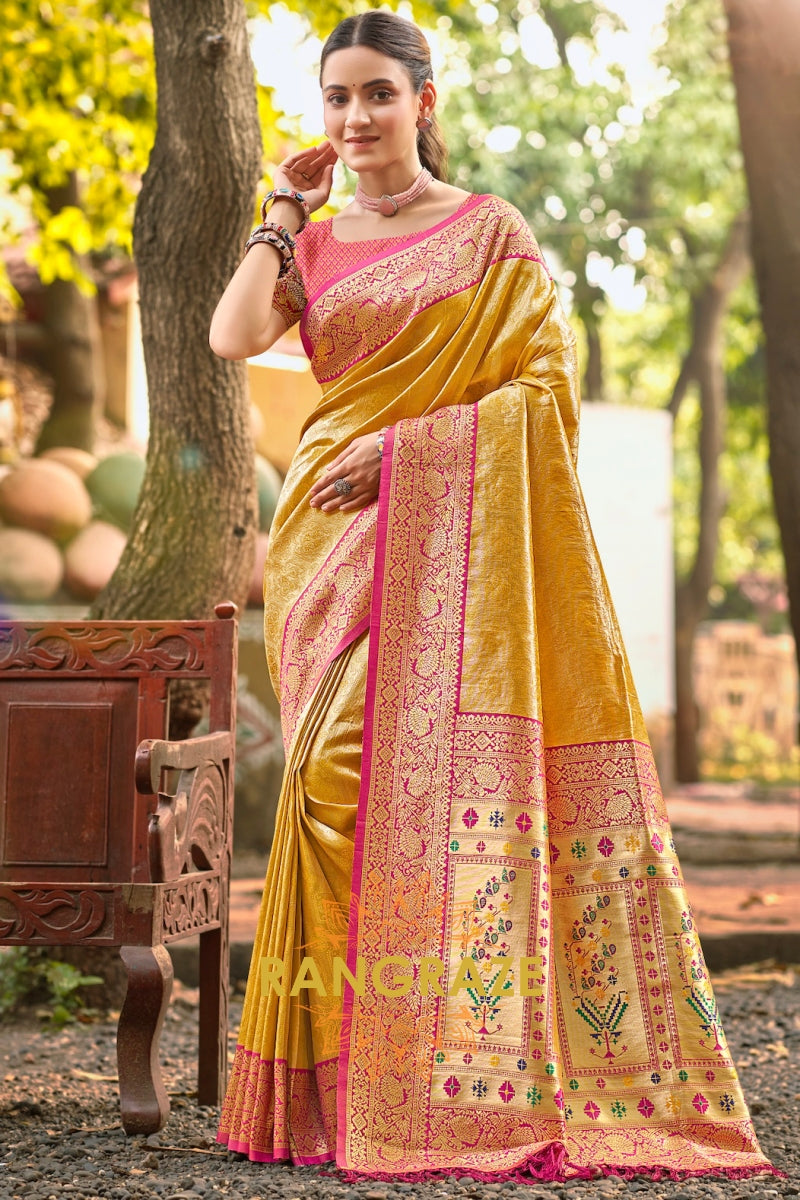 Golden Yellow Kanjivaram Silk Saree with Paithani Pallu