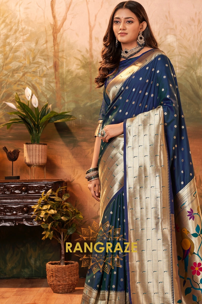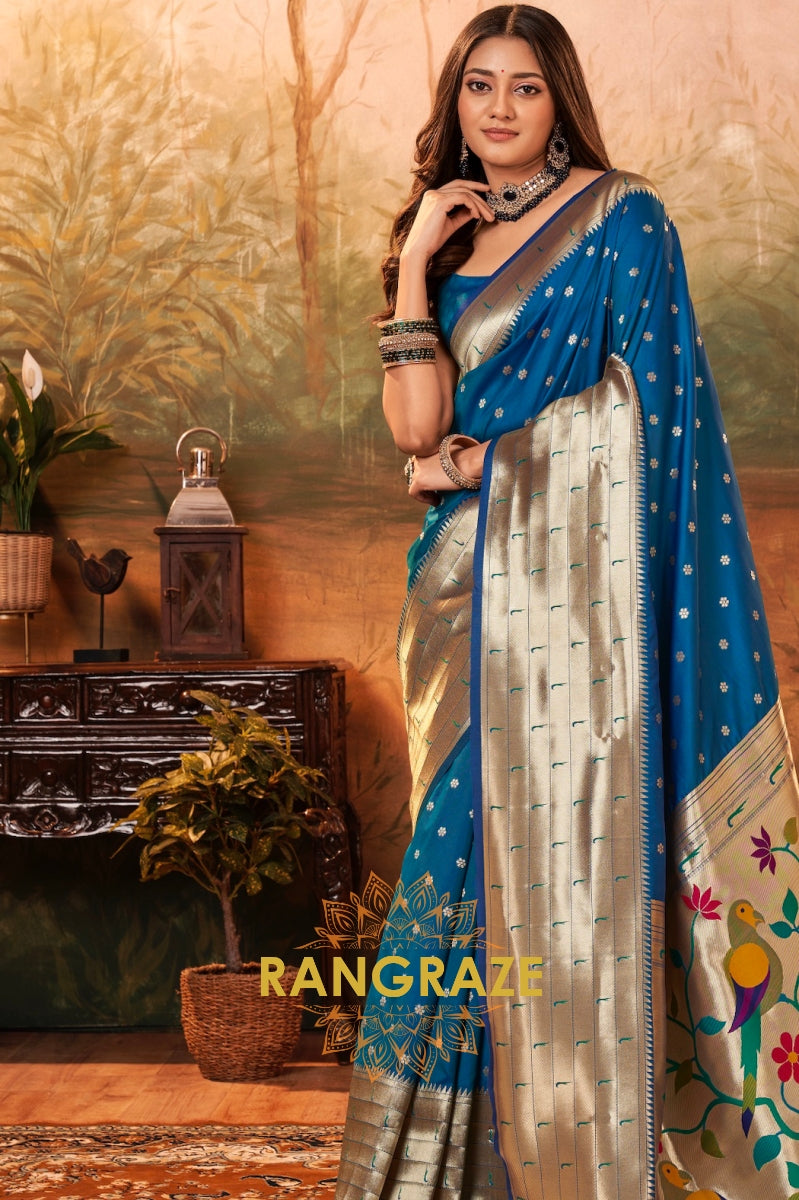 Alluring Blue Heavy Zari Pallu Paithani Silk Saree