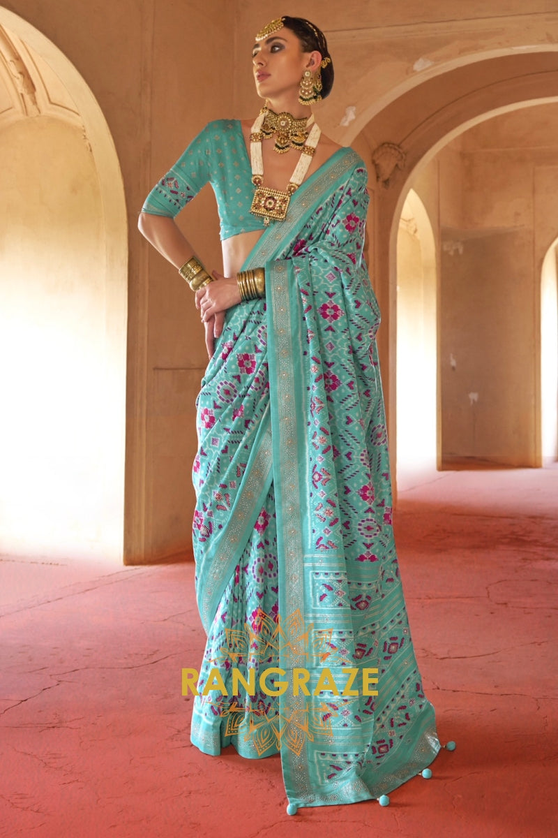 Mint Green and Navy Patola Majesty: Silk Patola Saree
