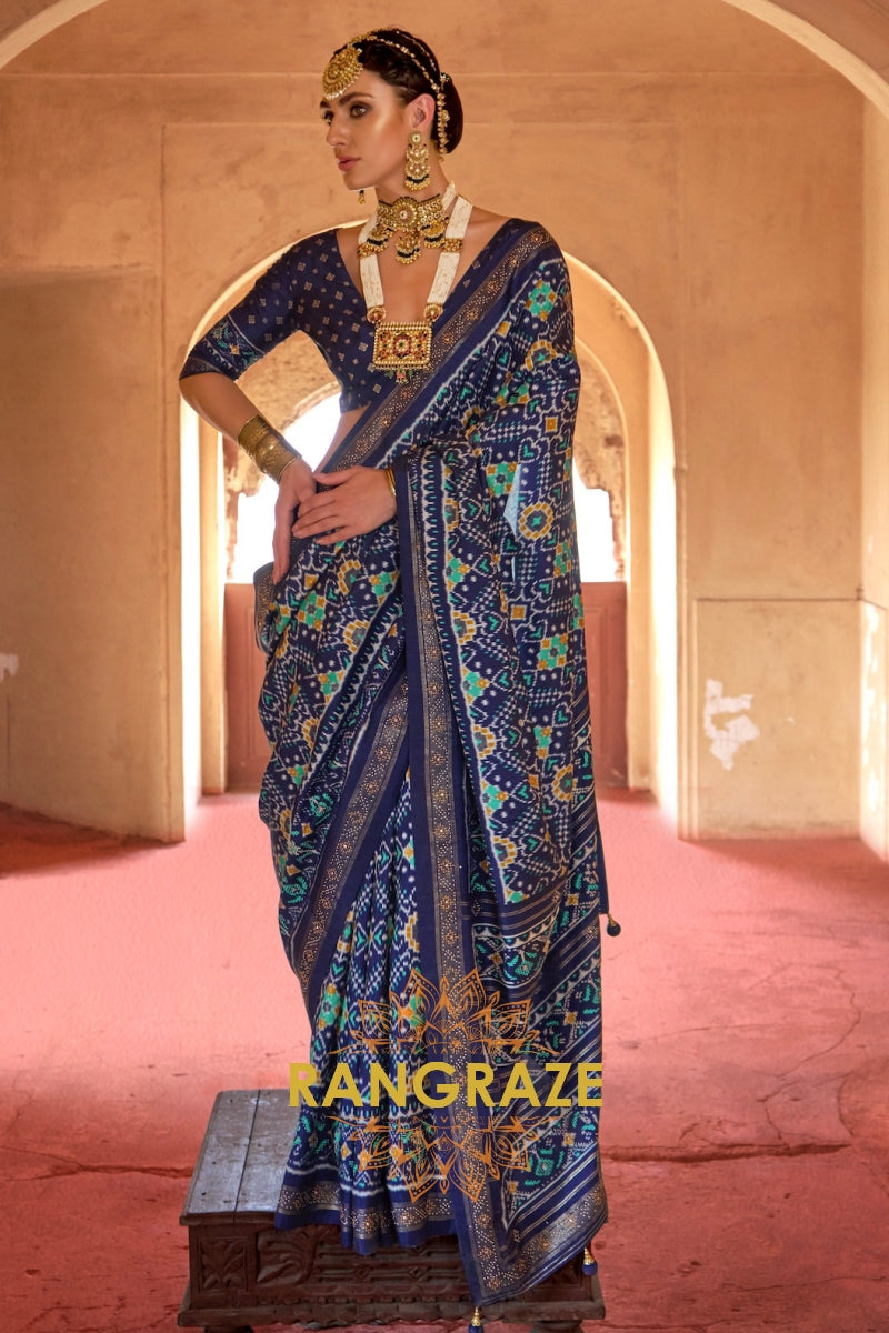 Midnight Blue and Red Patola Majesty: Silk Patola Saree