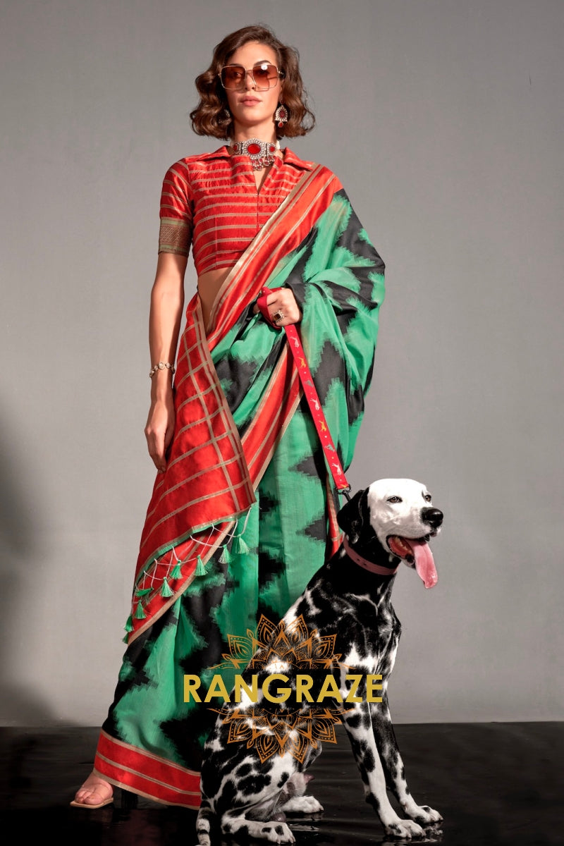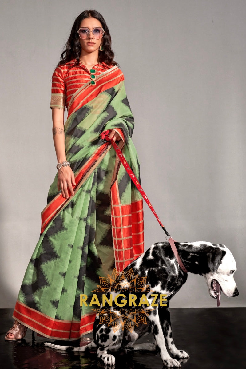 Meadow Green Woven Cotton Silk Saree