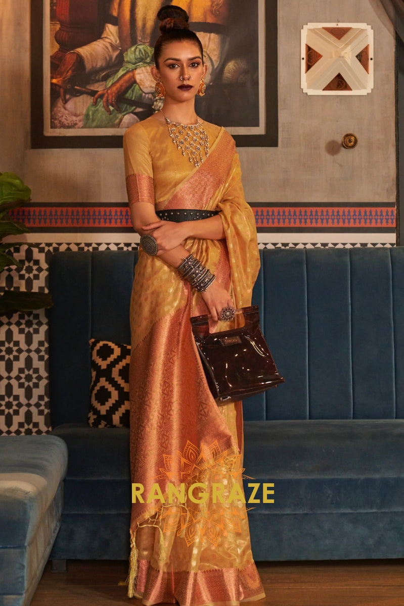 Mystic Golden Yellow Banarasi Tissue Woven Silk Saree