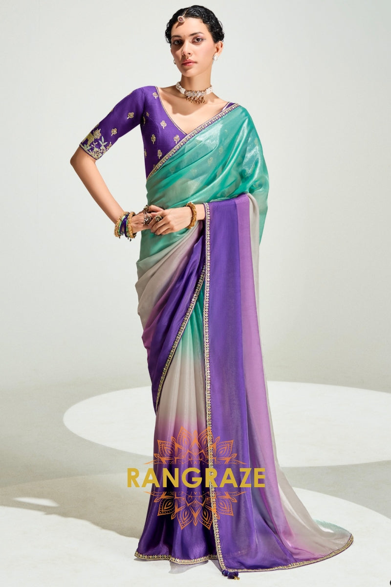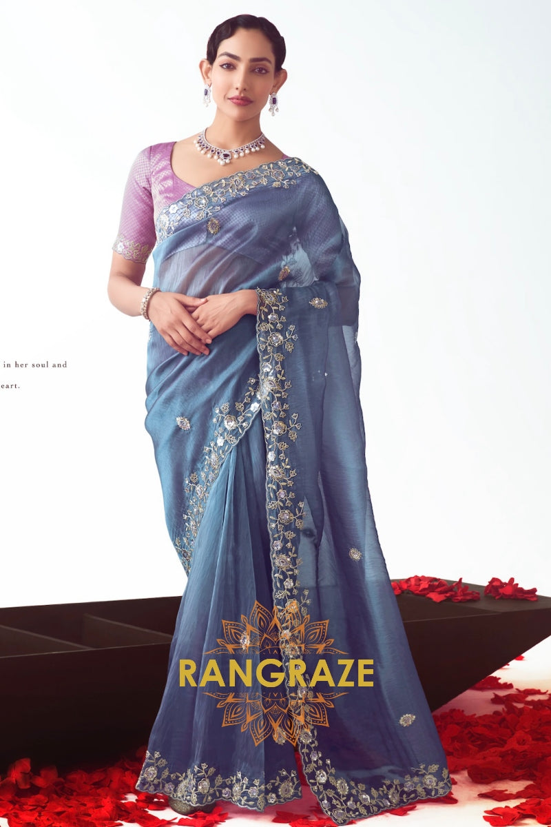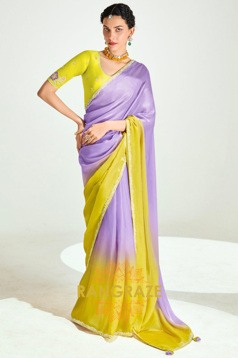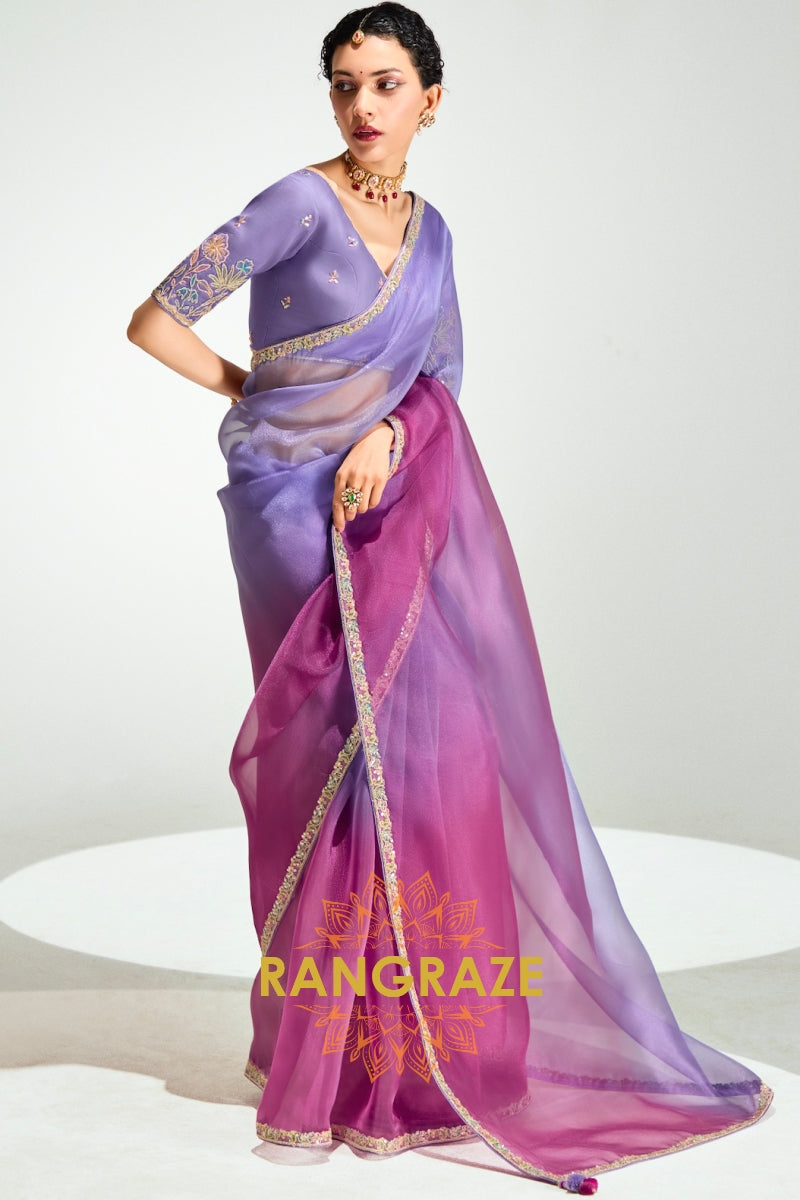 Moonlit Mist – Silver Organza Saree with Lavender Blouse
