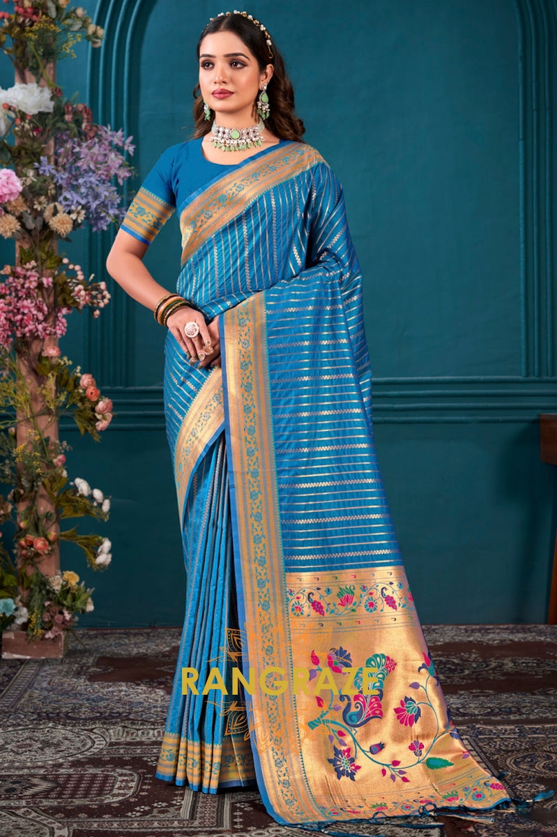 Alluring Blue Heavy Zari Pallu Paithani Silk Saree