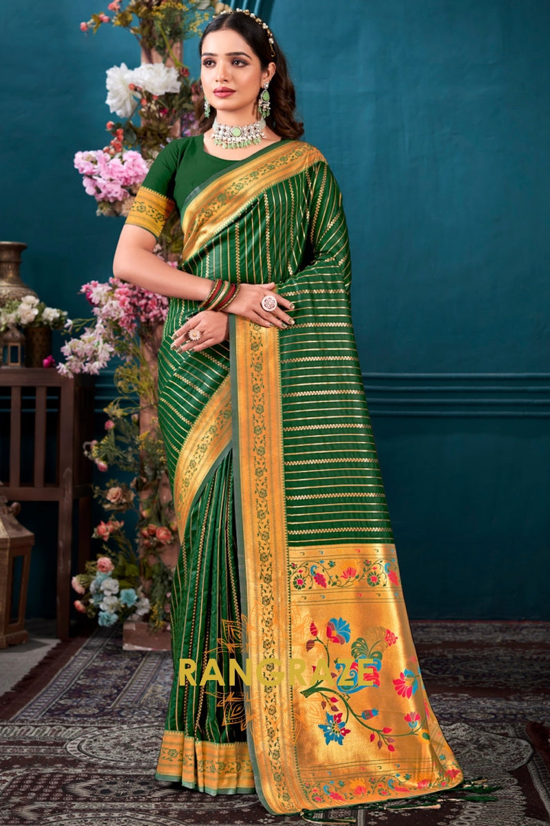 Alluring Green Heavy Zari Pallu Paithani Silk Saree