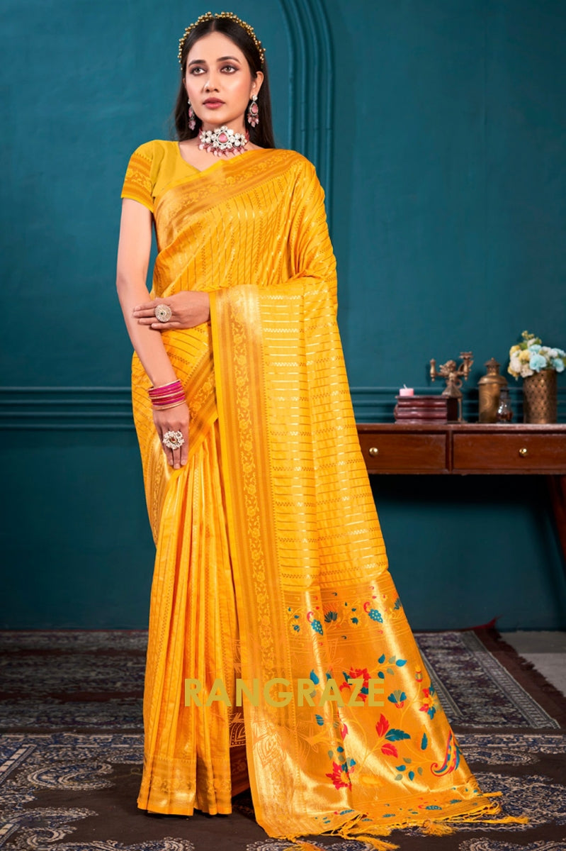 Alluring Golden Yellow Heavy Zari Pallu Paithani Silk Saree