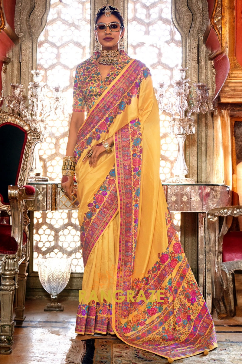Mystic Yellow Heavy Work Festive Banarasi Silk Saree