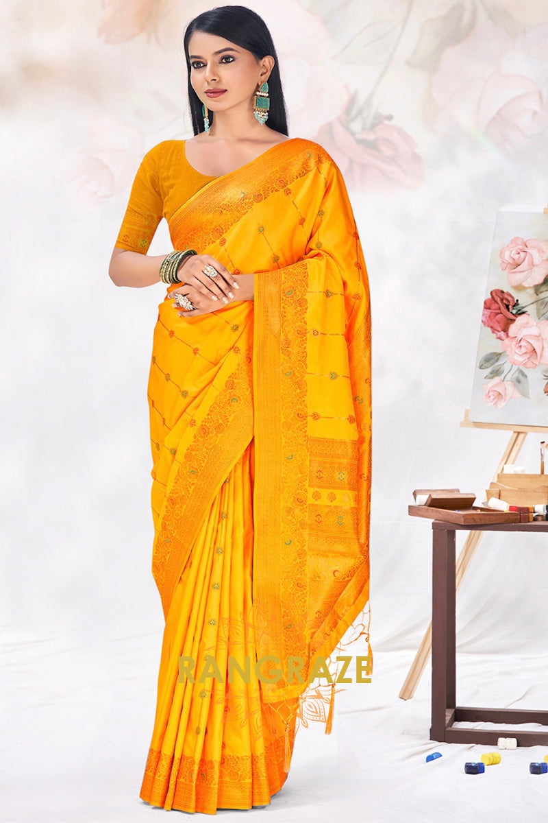 Golden Yellow Charming Banarasi Woven Tissue Silk Saree