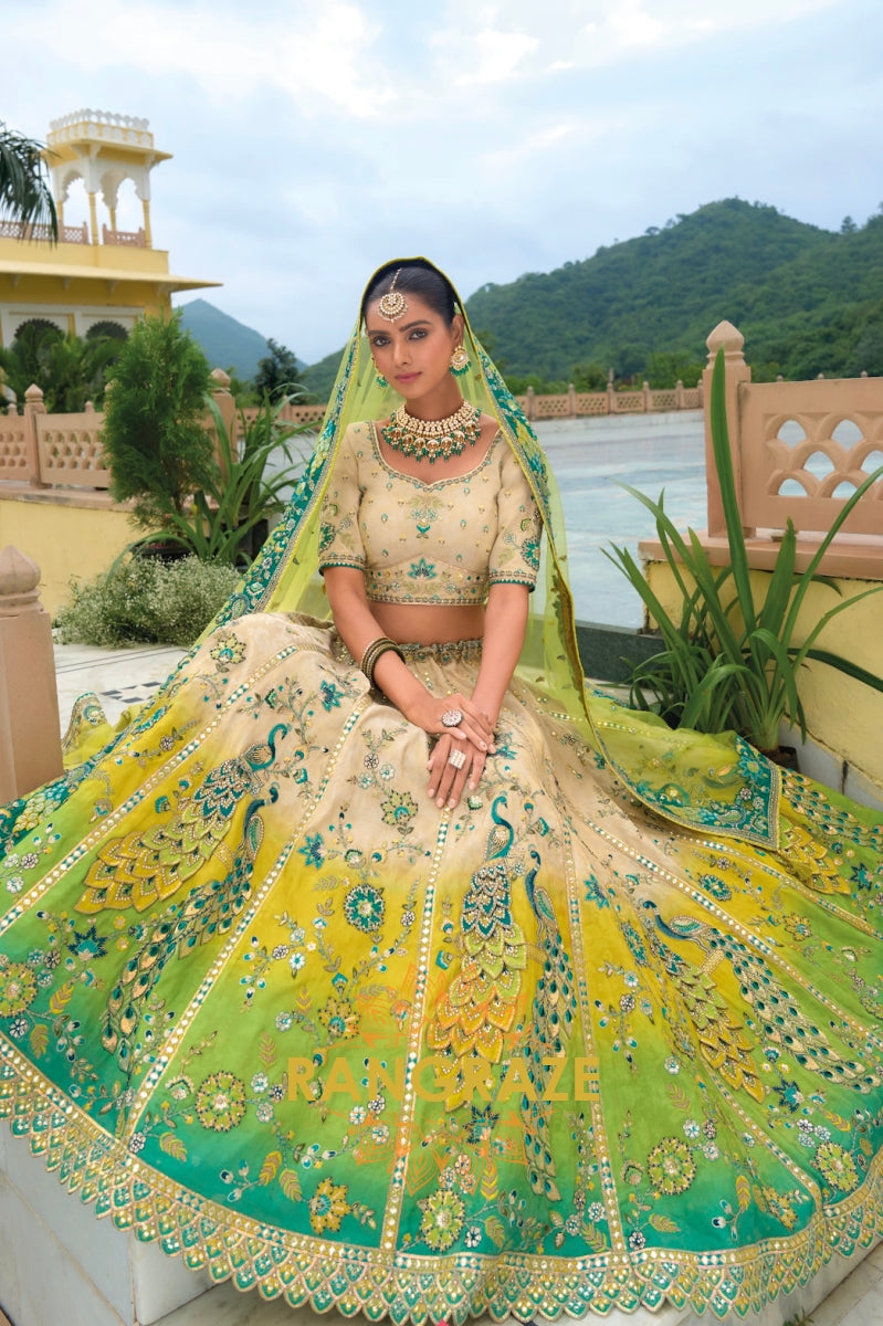 Peacock Elegance Lime and Ivory Lehenga – A Mesmerizing Blend of Grace and Grandeur