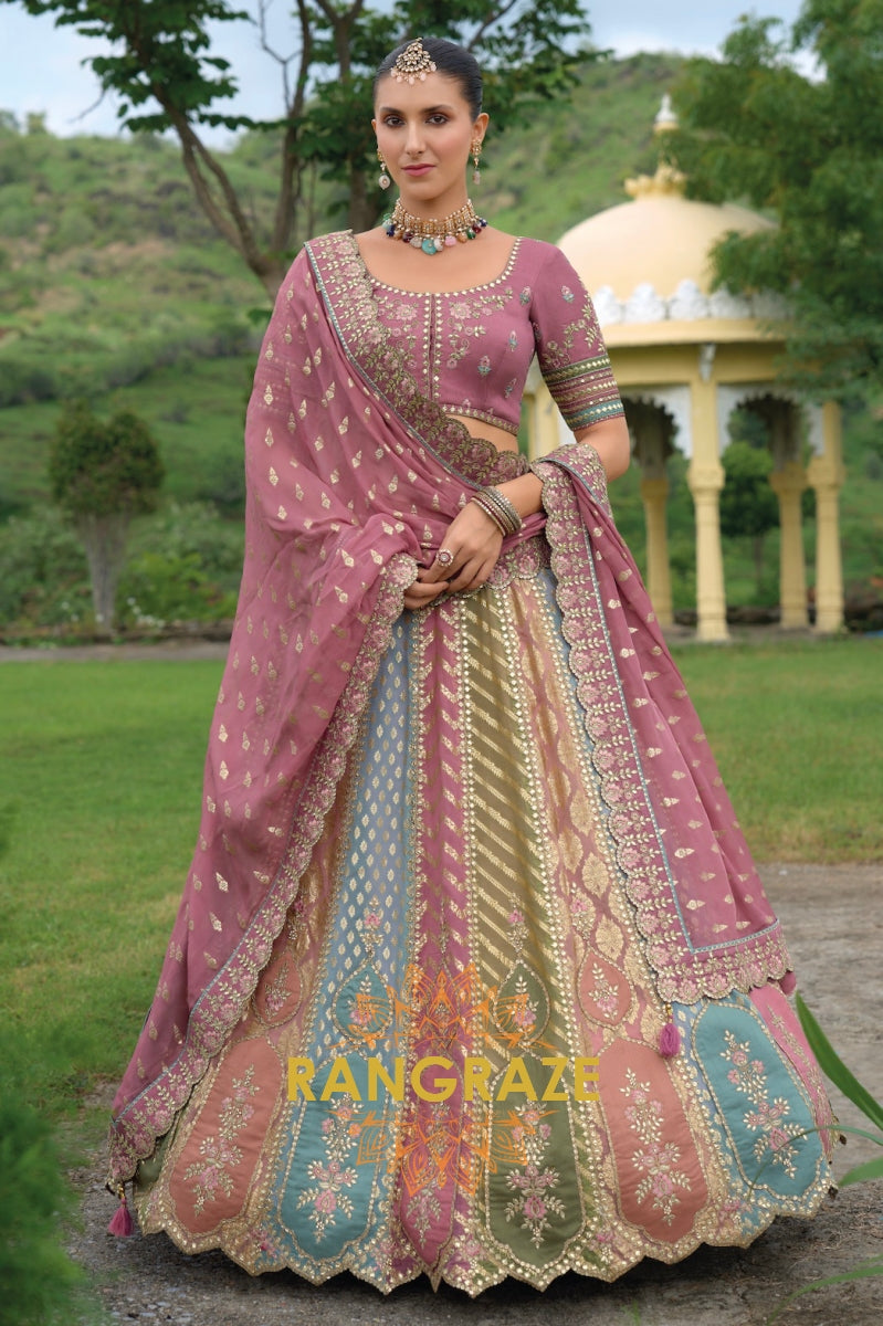 Twilight Rose and Mint Handcrafted Banarasi Lehenga – A Timeless Fusion of Elegance and Heritage