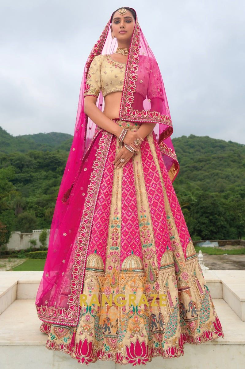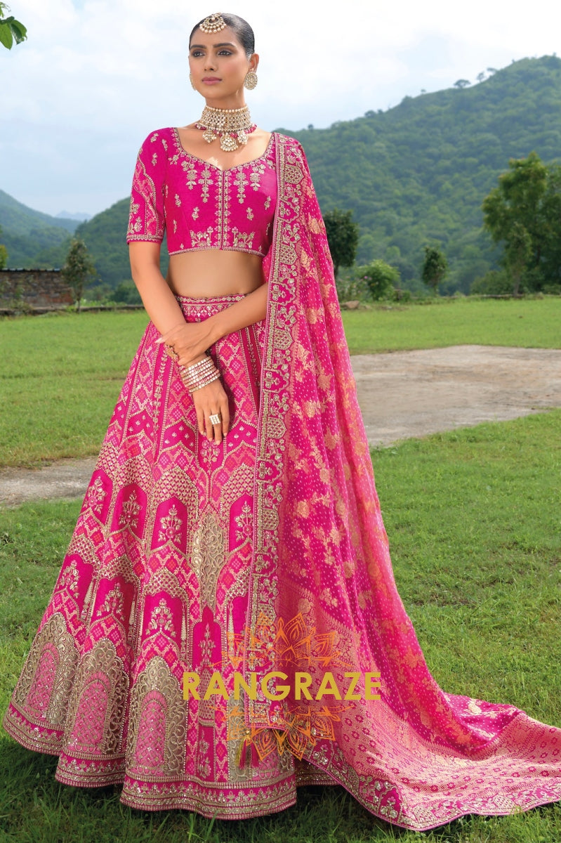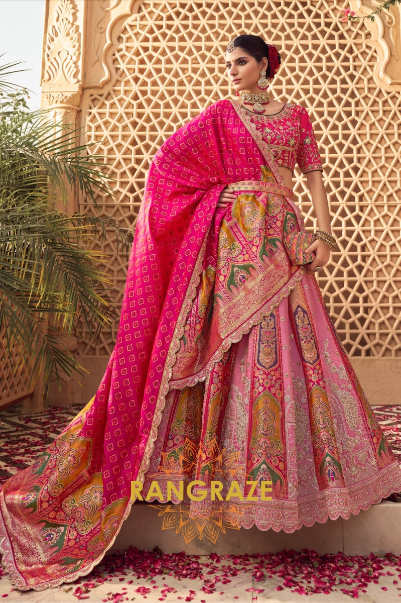 Pink Banarasi Silk Lehenga with Rani Pink Bandhani Dupatta