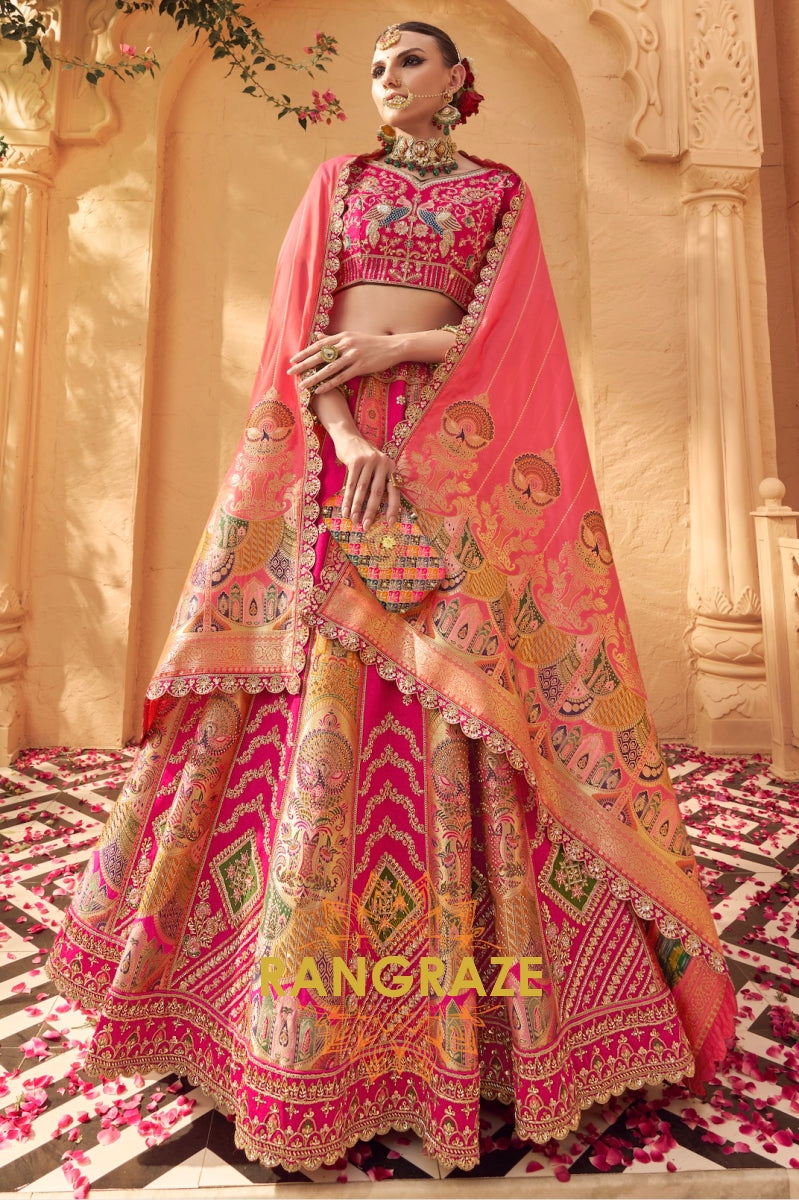 Majestic Fuchsia Bridal Banarasi Silk Lehenga