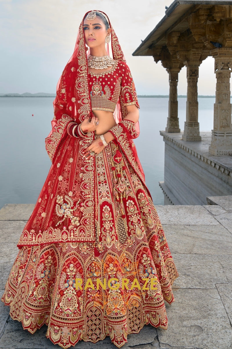 Scarlet Majesty Bridal Banarasi Silk Lehenga with Two Dupattas – A Royal Ode to Bridal Splendor