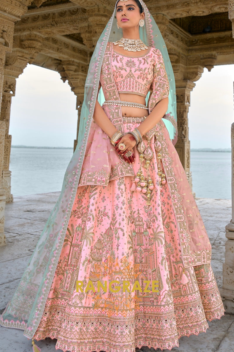 Ethereal Blush Double-Dupatta Bridal Banarasi Silk Lehenga – A Symphony of Elegance and Charm