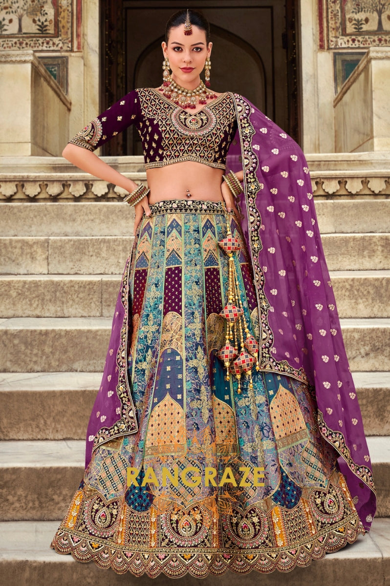 Majestic Purple and Royal Blue Banarasi Silk Lehenga – A Regal Tapestry of Elegance
