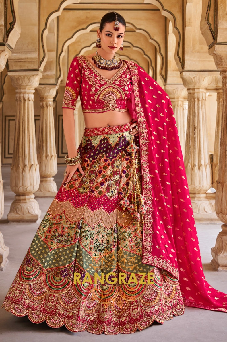 Ravishing Red and Multicolor Banarasi Silk Lehenga – A Vibrant Blend of Tradition and Grandeur