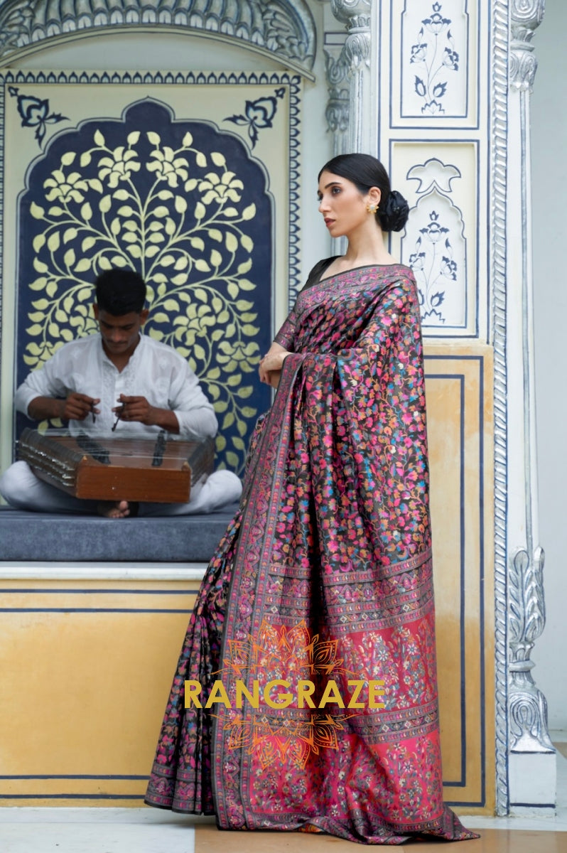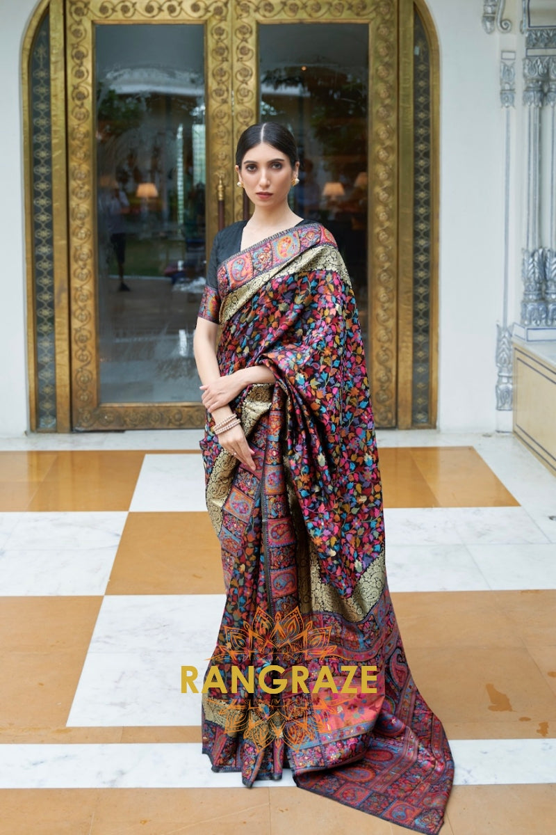 Black Multi Color Kashmiri Jamewar Weave Saree