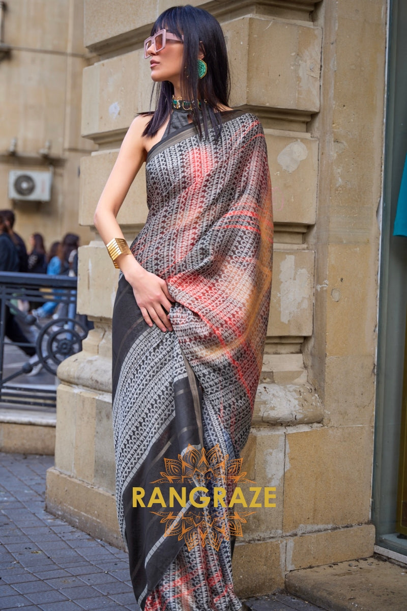 Timeless Black Print Handloom Weaving Viscose Silk Saree