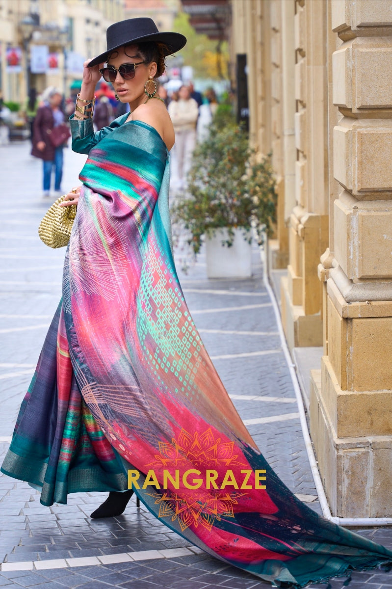 Rangraze’s collection of Multi-Color sarees is a celebration of diversity and artistry. Each saree harmonizes a range of vibrant colors with intricate patterns, bringing a joyful and dynamic style.