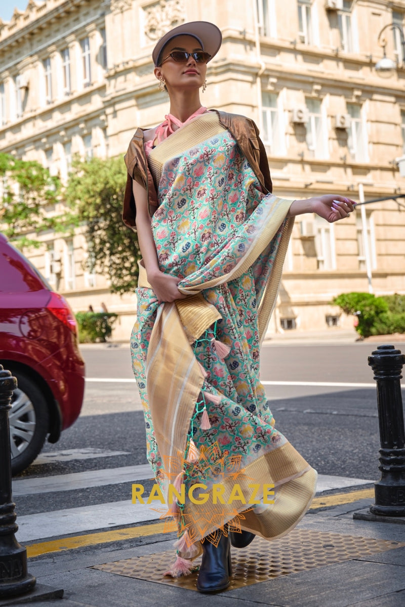Regal Sea Green Printed Brasso Handloom Weaving Soft Silk Saree