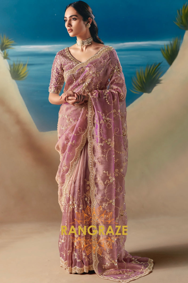 Orchid Bloom Satin Organza Saree with Sequin & Bead Hand Embroidery