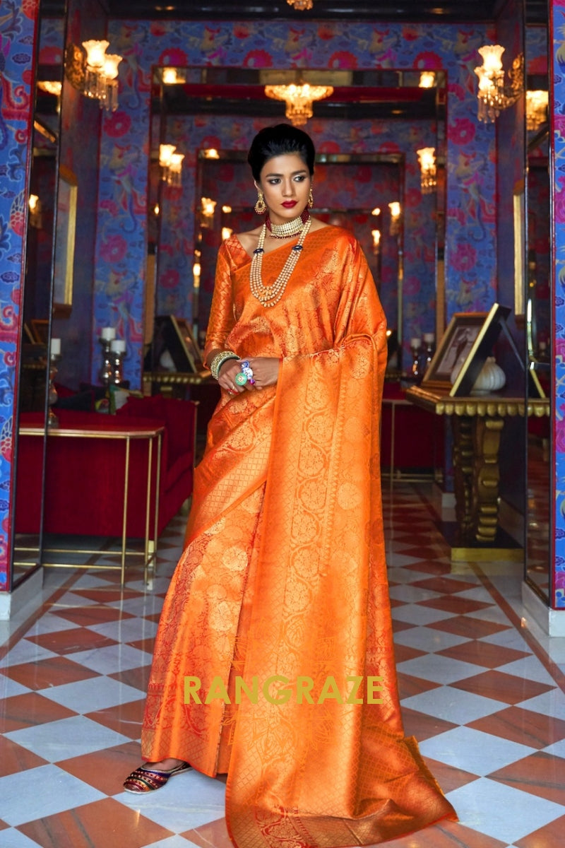 Royal Golden Orange Woven Kanjivaram Silk Saree