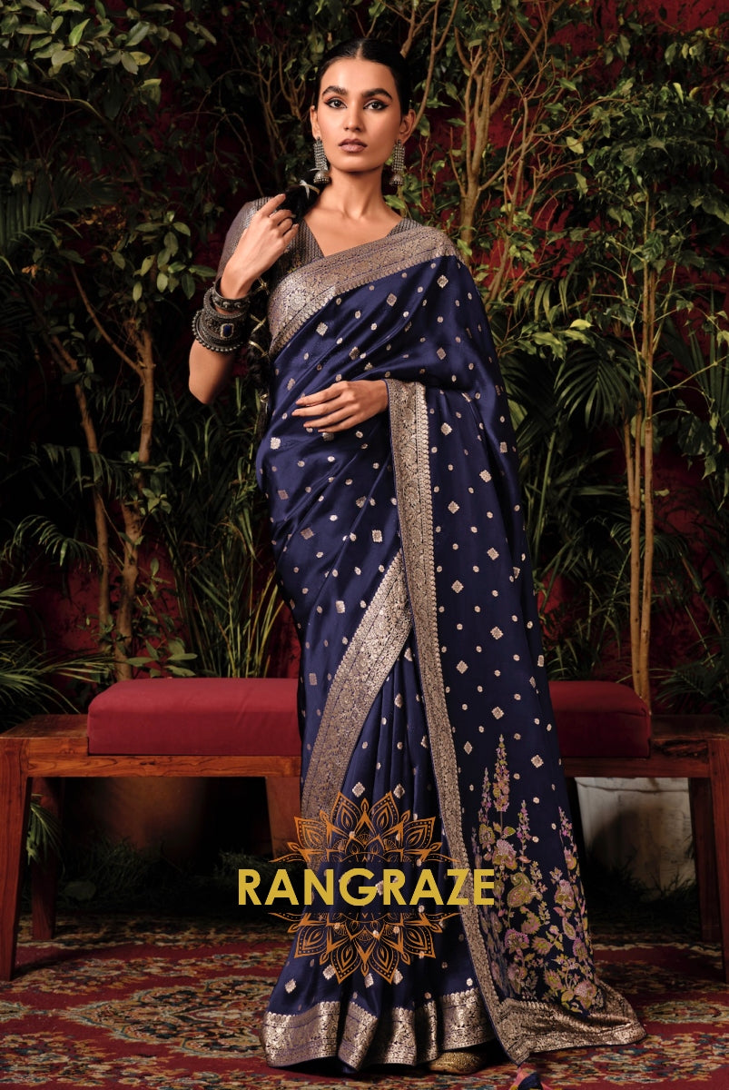 Midnight Sapphire: Designer Zari Woven Silk Saree
