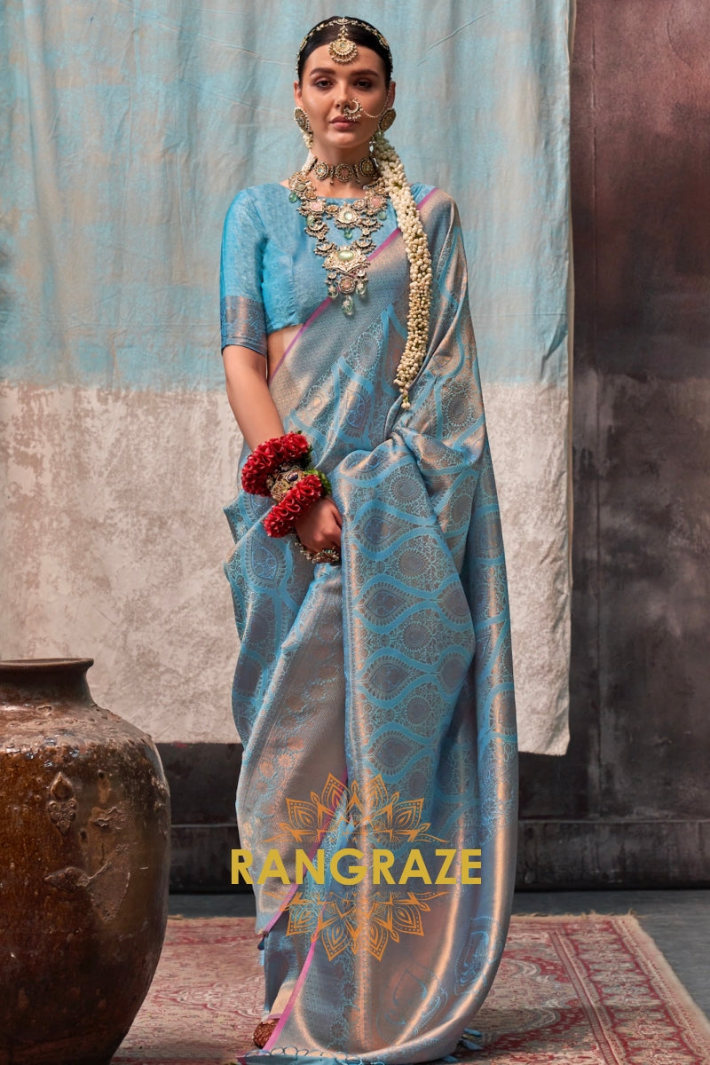 Rich Magnetic Blue Color Kanjivaram Silk Saree