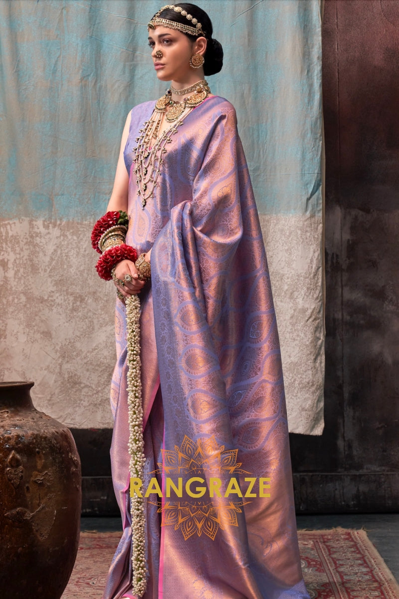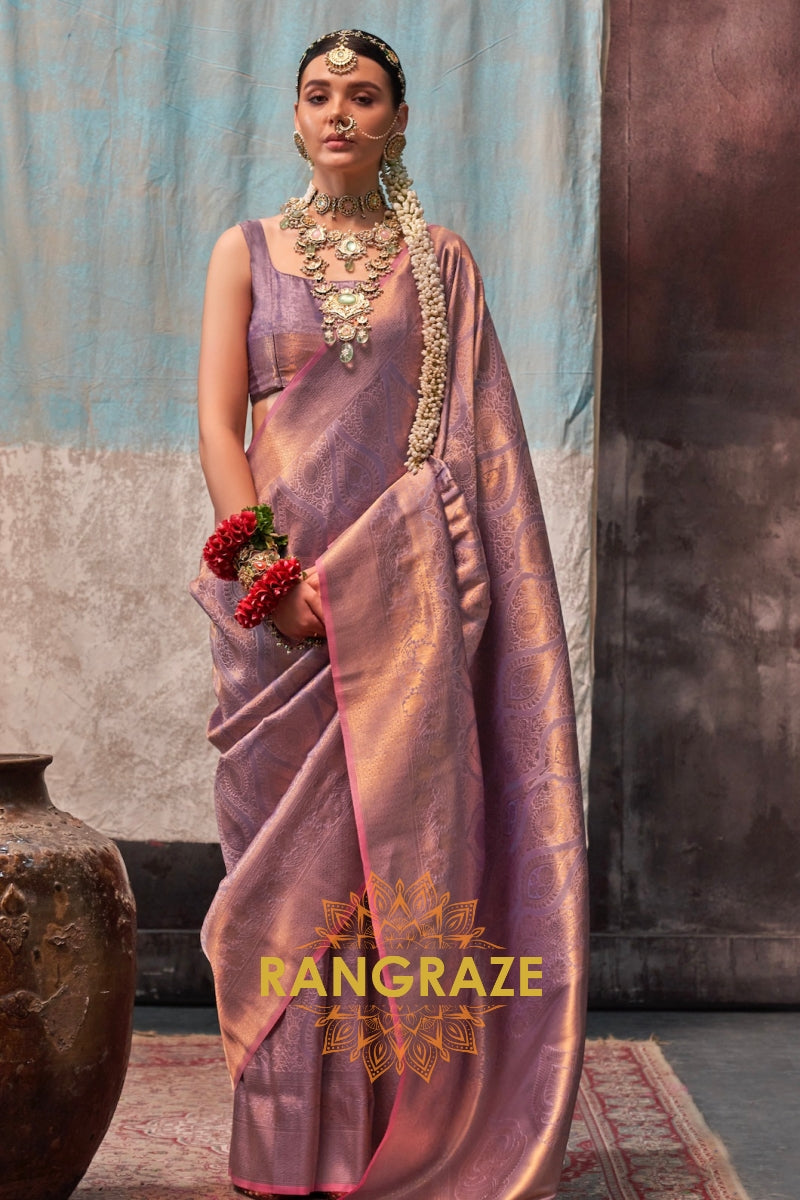 Noble Purple Grey Woven Zari Kanjivaram Silk Saree