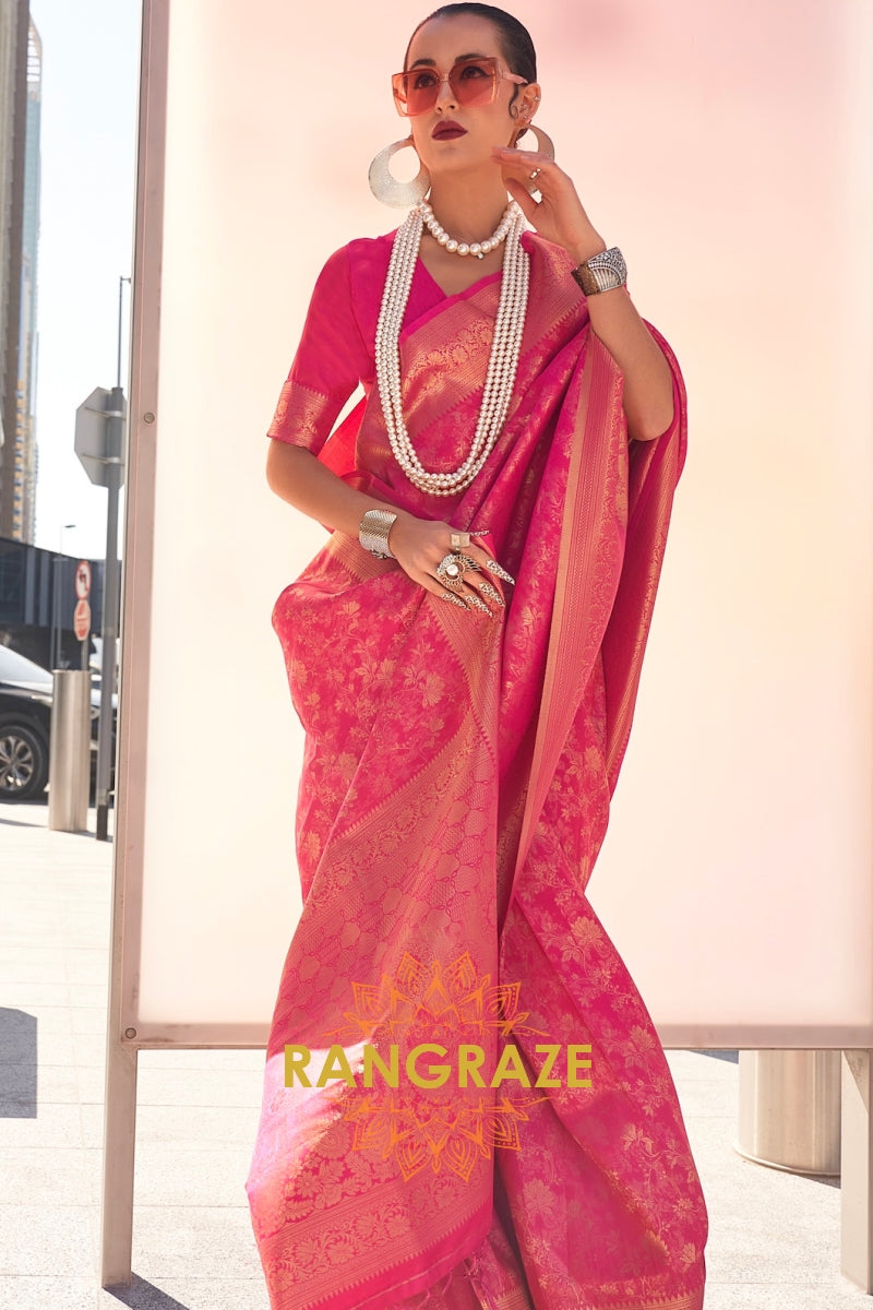 Magenta Pink Intricate Zari Work Banarasi Silk Saree