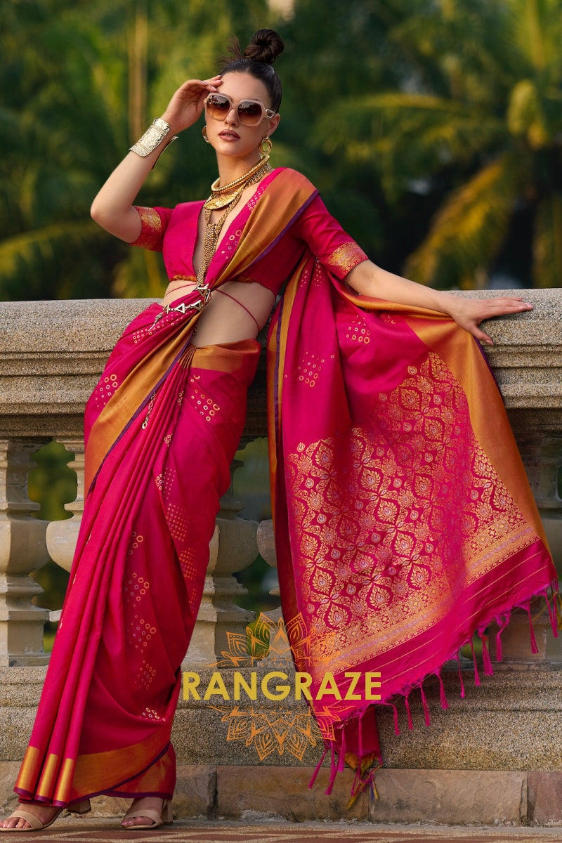 Rani Pink Woven Banarasi Silk Saree