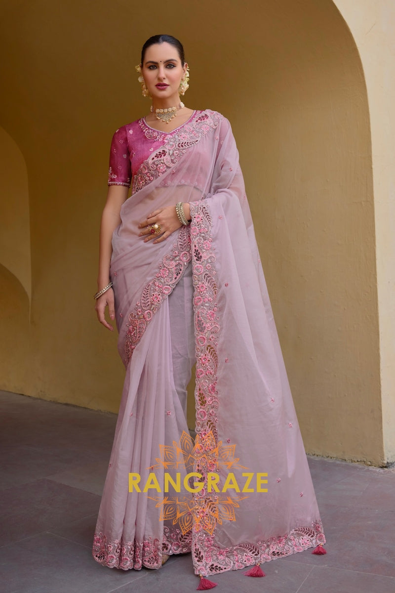 Blush Orchid Embroidered Cutwork Saree
