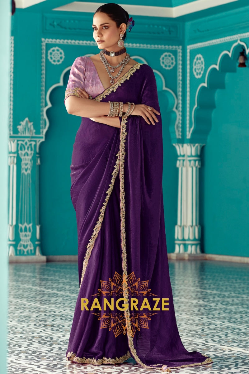 Royal Amethyst: Embroidered Organza Elegance Saree