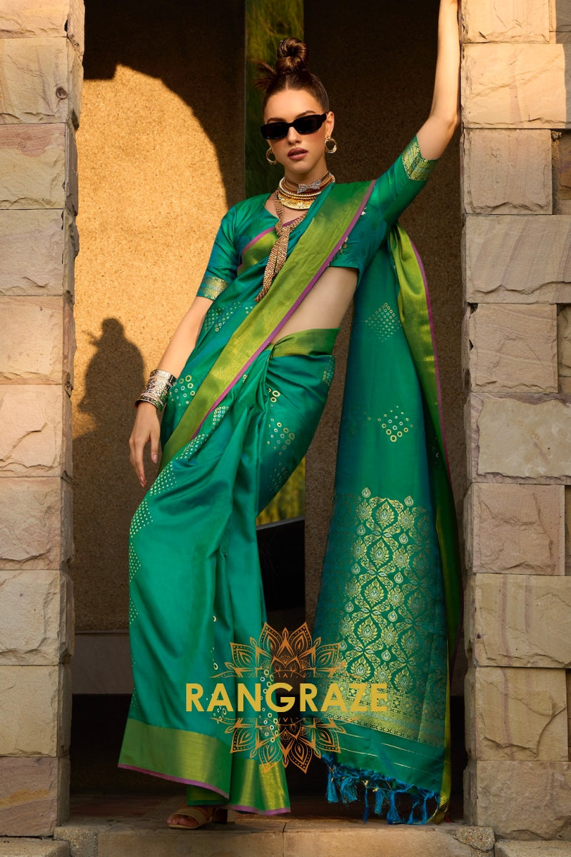 Emerald Radiance Banarasi Silk Saree with Gold Zari Elegance