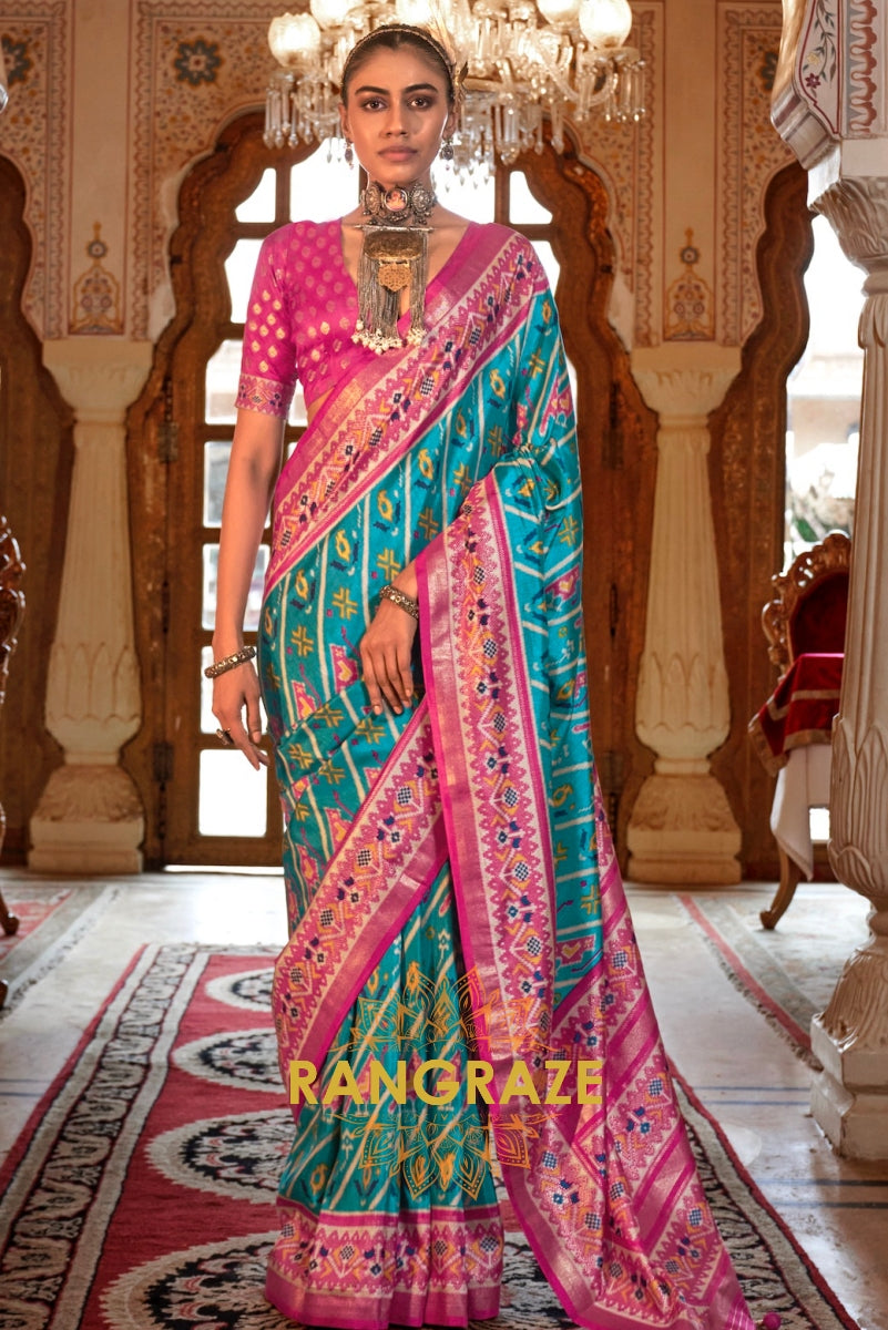 Turquoise and Pink Patola Bliss: Silk Patola Saree
