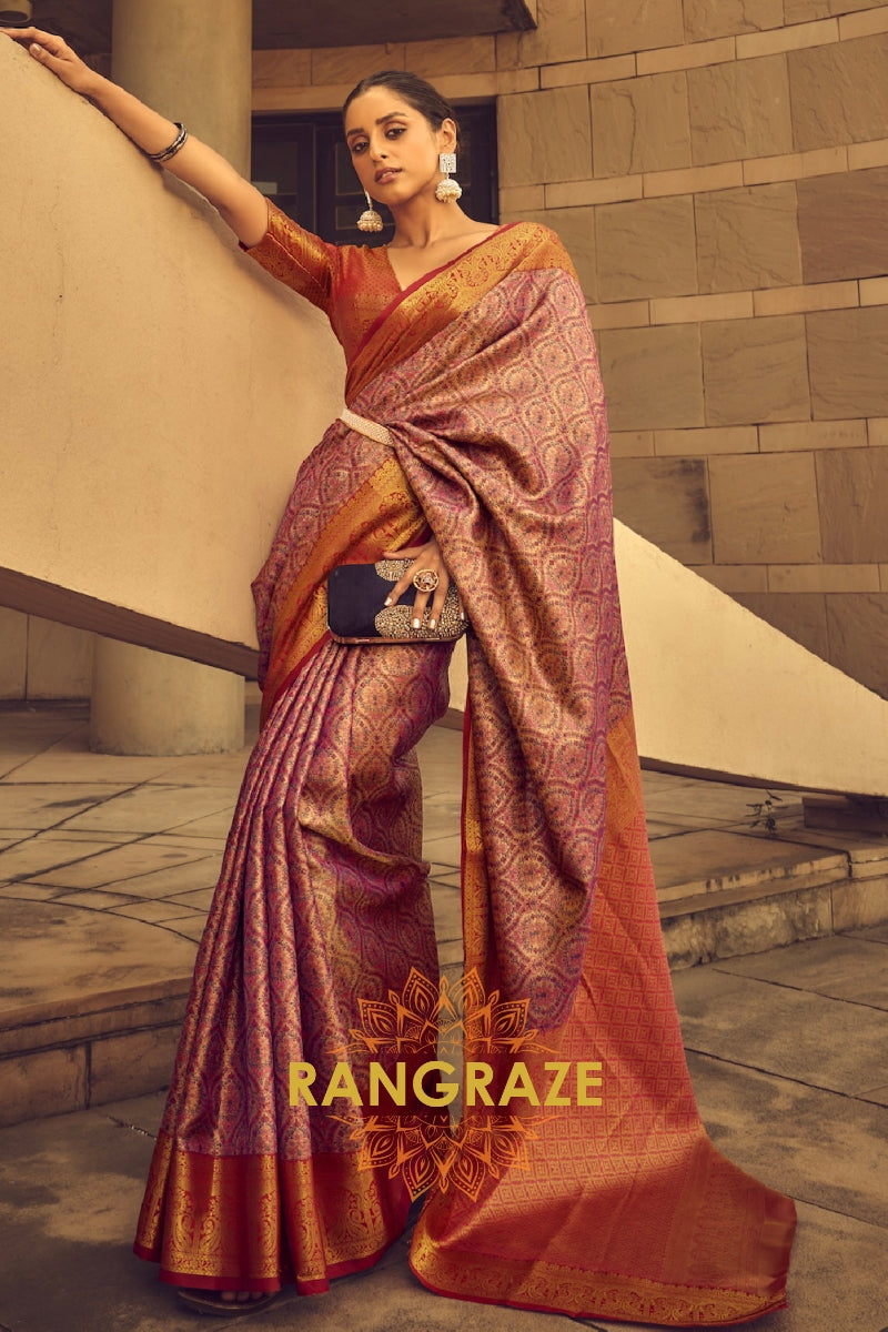 Rich Magnetic Brown Color Kanjivaram Silk Saree
