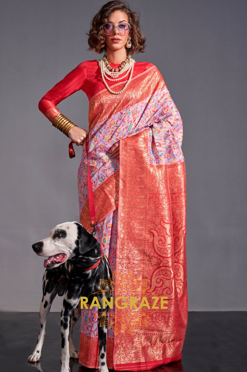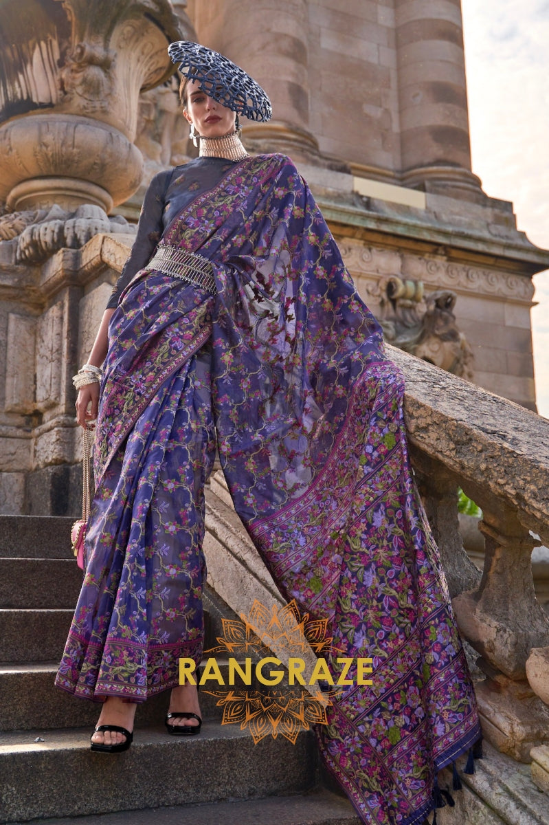 Luxe Purple Woven Banarasi Kashmiri Silk Saree