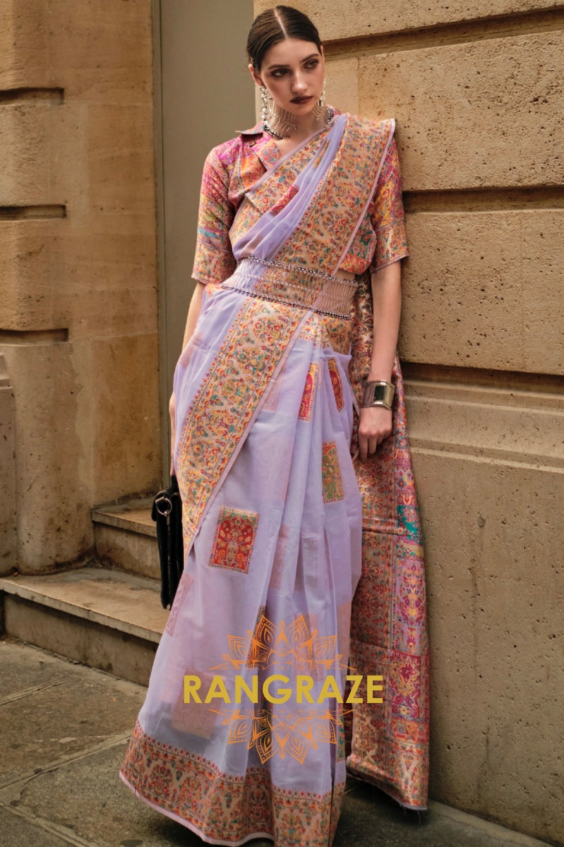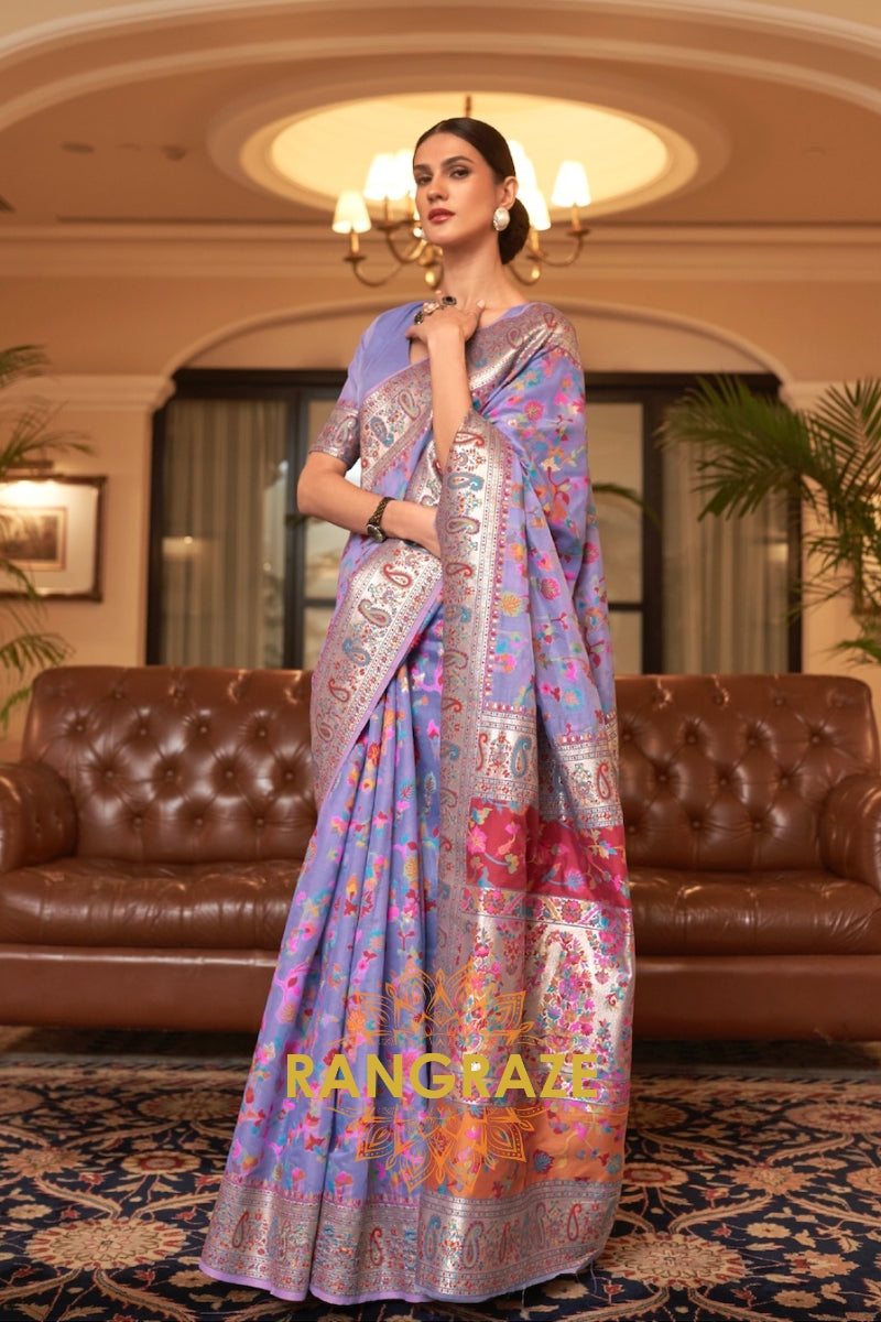 Orchid Purple Multi Color Woven Pashmina Jamewar Saree
