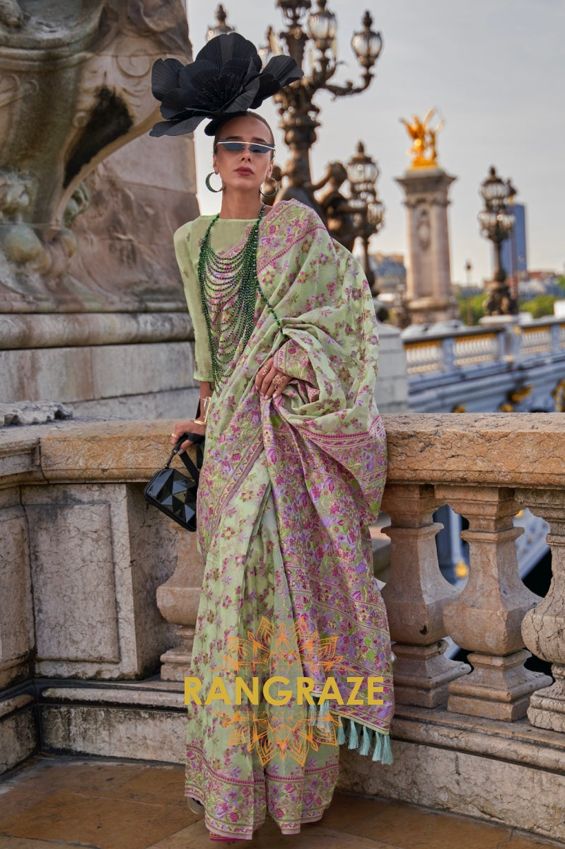 Pistachio Green Multi Color Woven Pashmina Jamewar Saree
