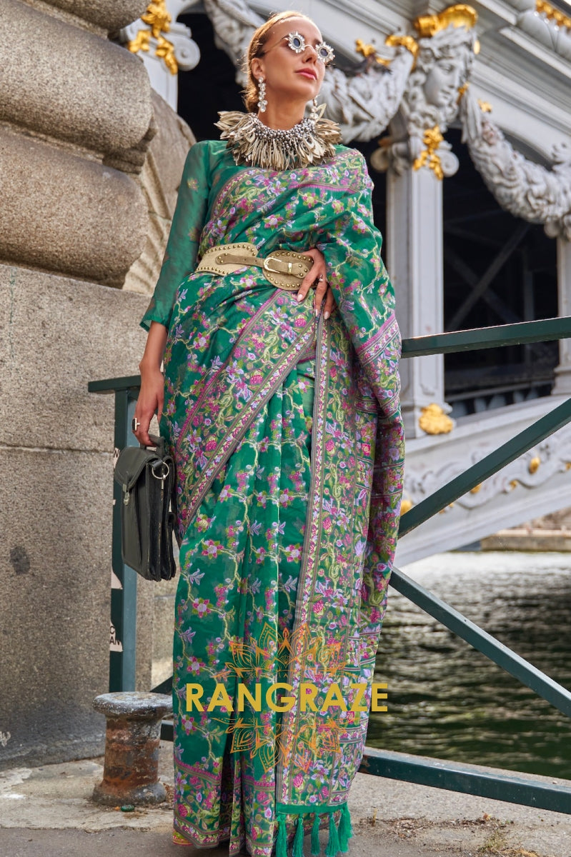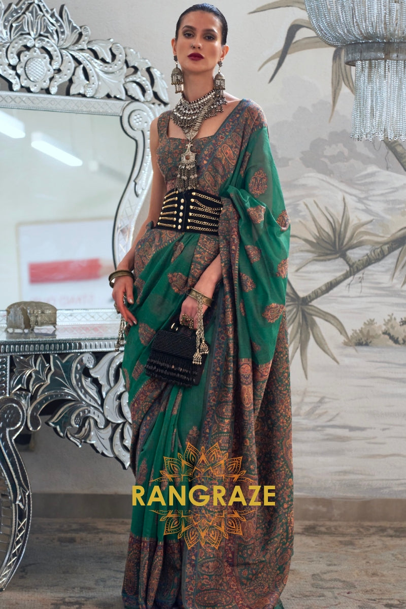 Majestic Forest Green Woven Kashmiri Jamewar Modal Silk Saree