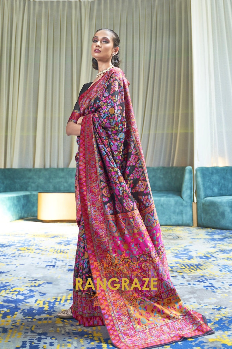 Black Multi Color Kashmiri Jamewar Weave Saree