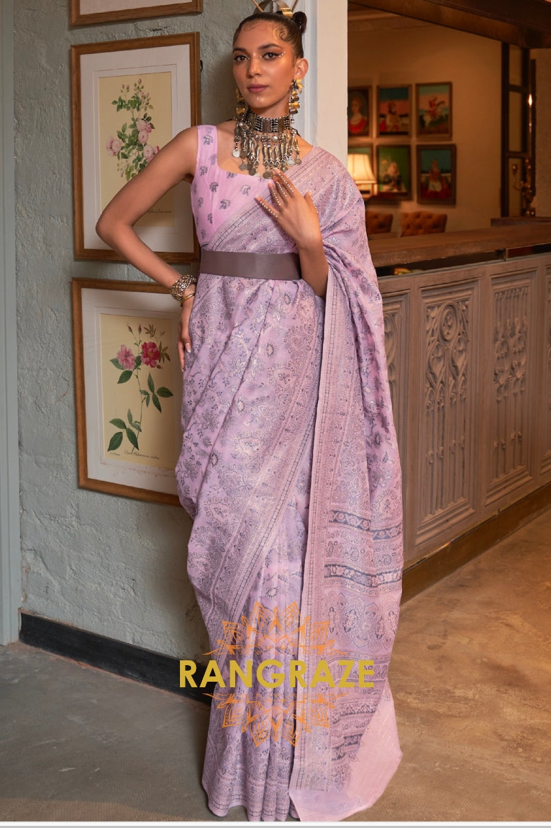 Sweet Purple Woven Kashmiri Cotton Silk Saree