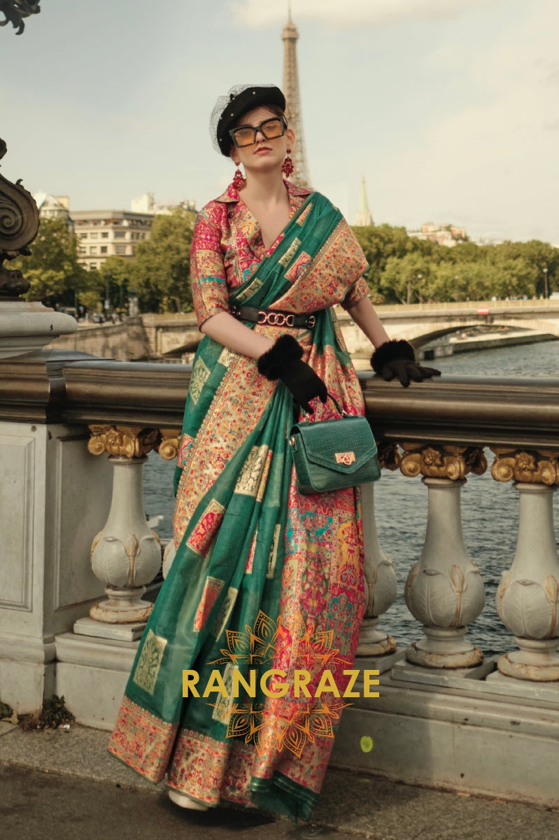 Majestic Forest Green Woven Kashmiri Jamewar Modal Silk Saree