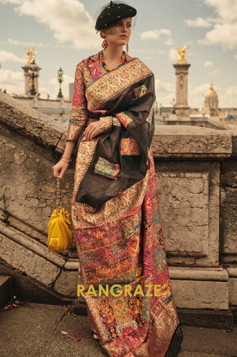 Black Multicolor Woven Kashmiri Jamewar Saree With Beautiful Rich Pallu