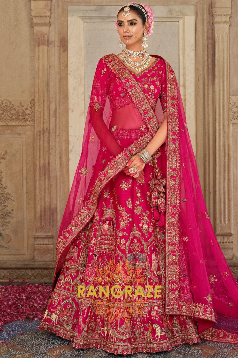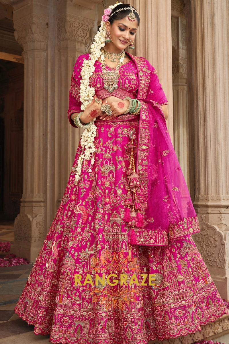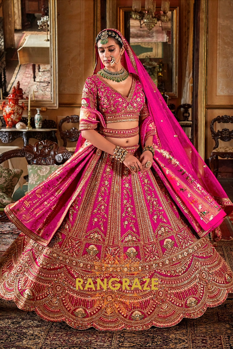 Majestic Fuchsia Double-Dupatta Bridal Banarasi Silk Lehenga – An Ode to Radiant Royalty