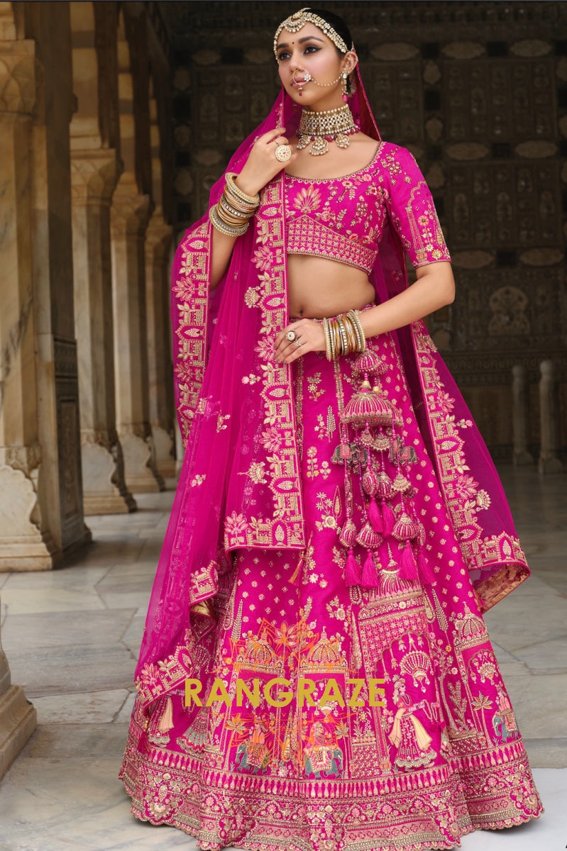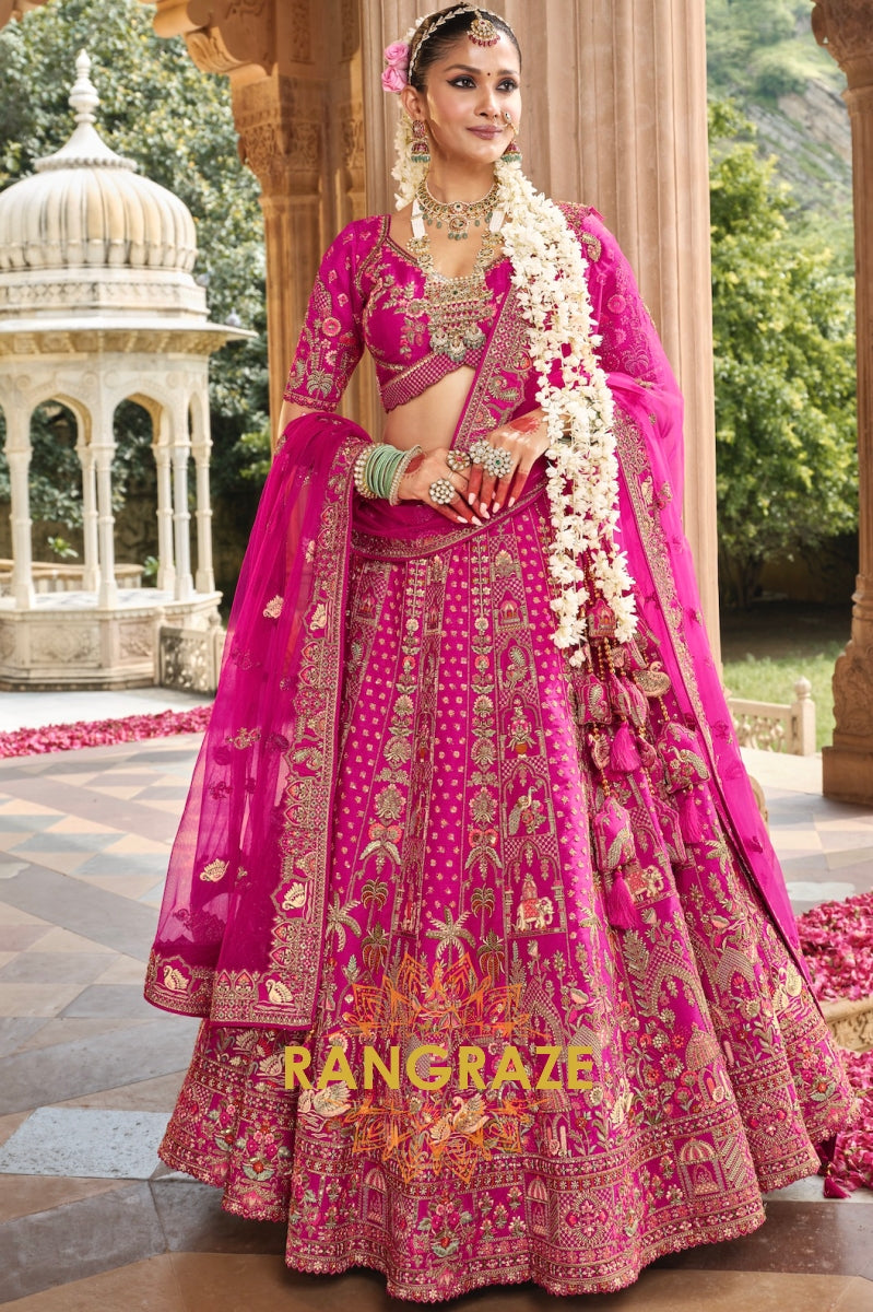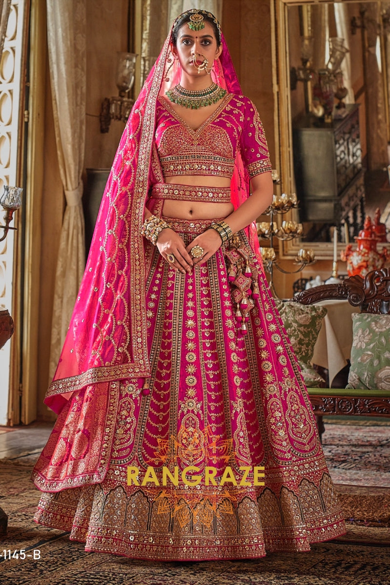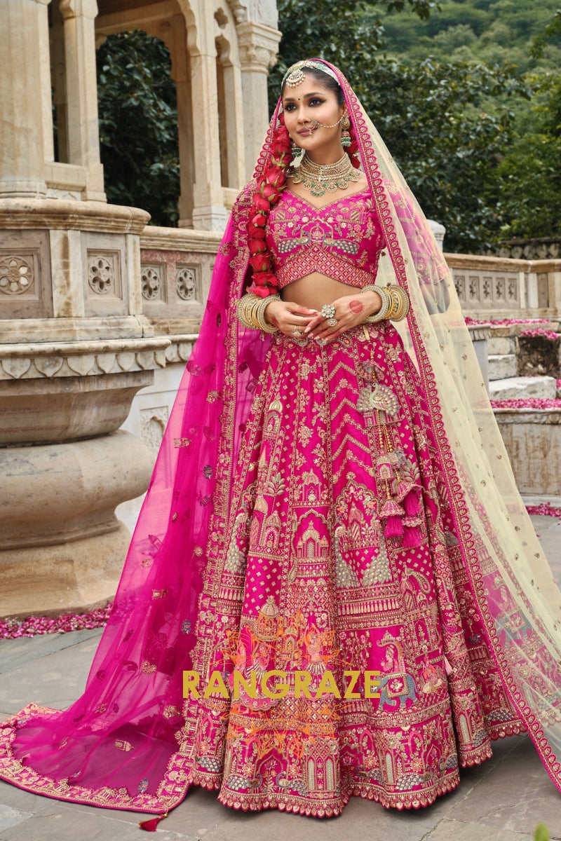 Majestic Fuchsia Double-Dupatta Bridal Banarasi Silk Lehenga – An Ode to Radiant Royalty