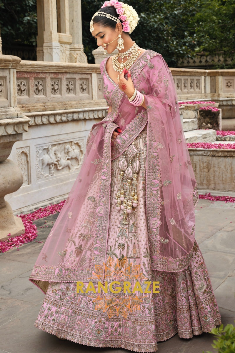 Rosé Royale Double-Dupatta Bridal Banarasi Silk Lehenga – A Celebration of Radiant Grandeur