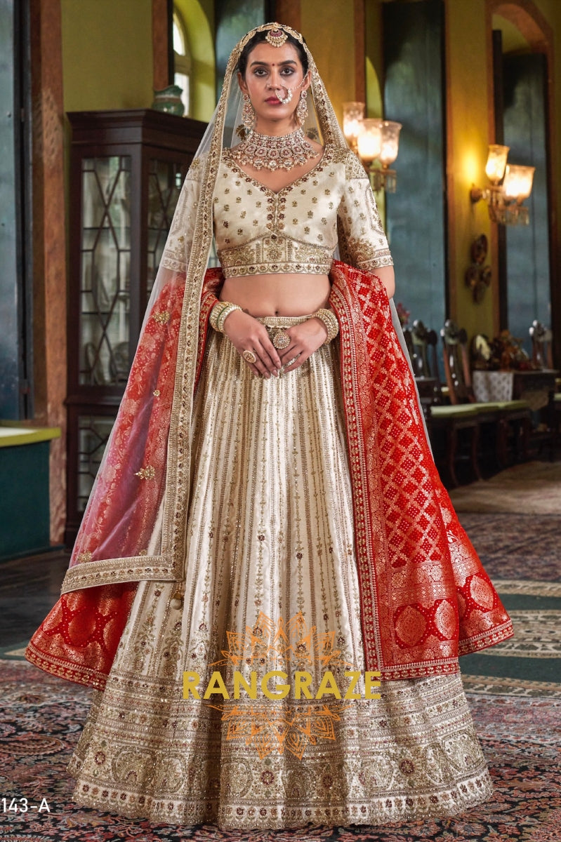 Ruhani Noor Double-Dupatta Bridal Silk Lehenga – The Ivory Radiance of Tradition