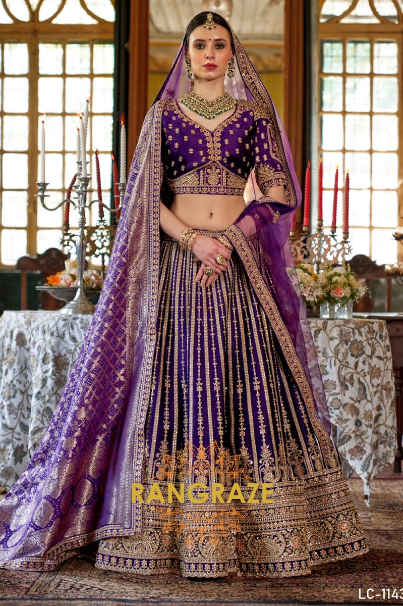 Ruhani Amara Double-Dupatta Bridal Silk Lehenga – The Majesty of Midnight Purple